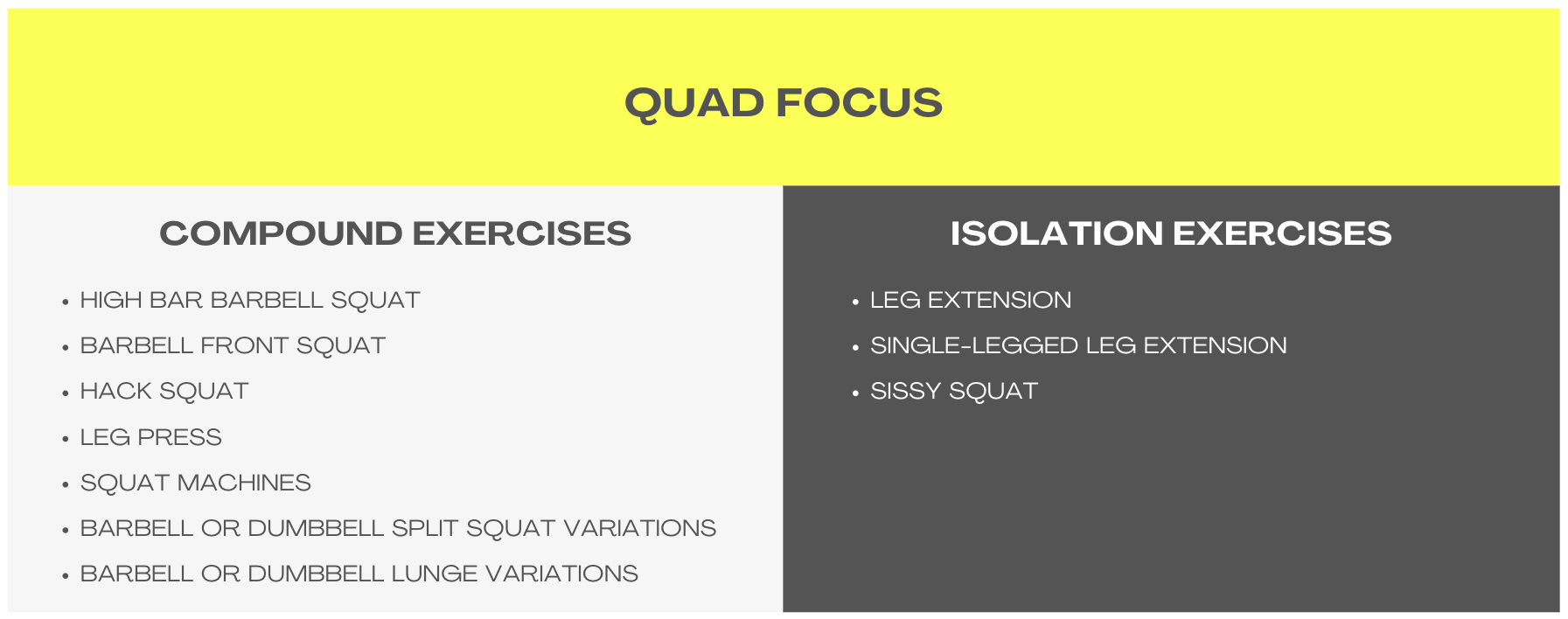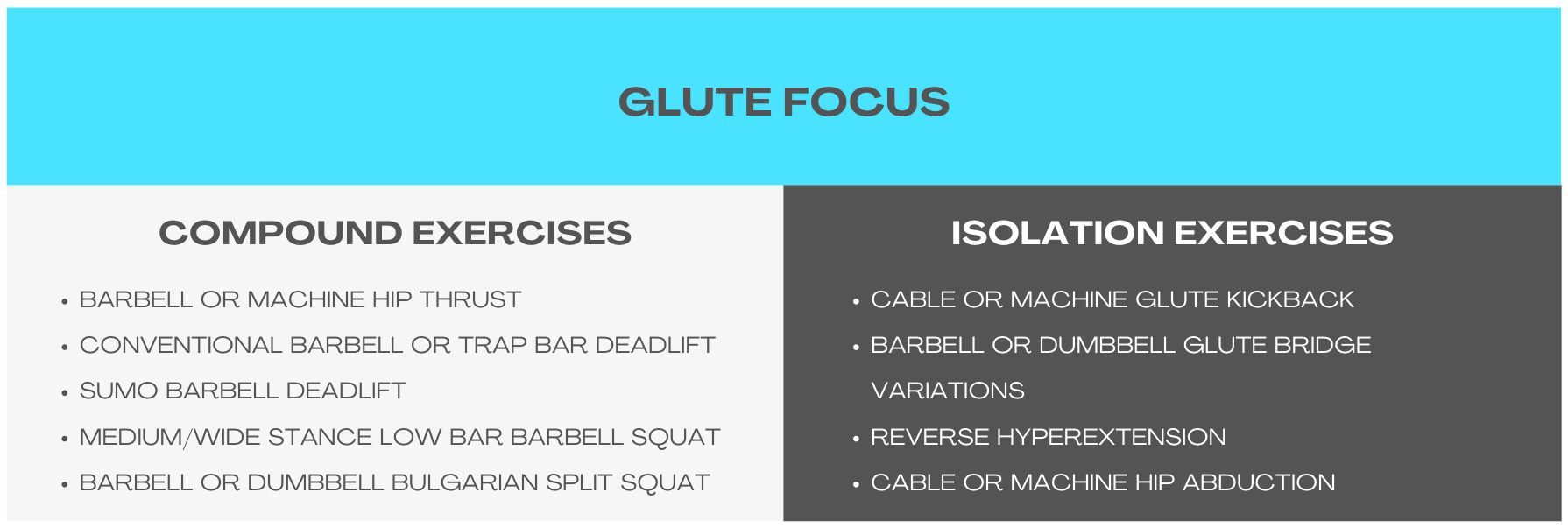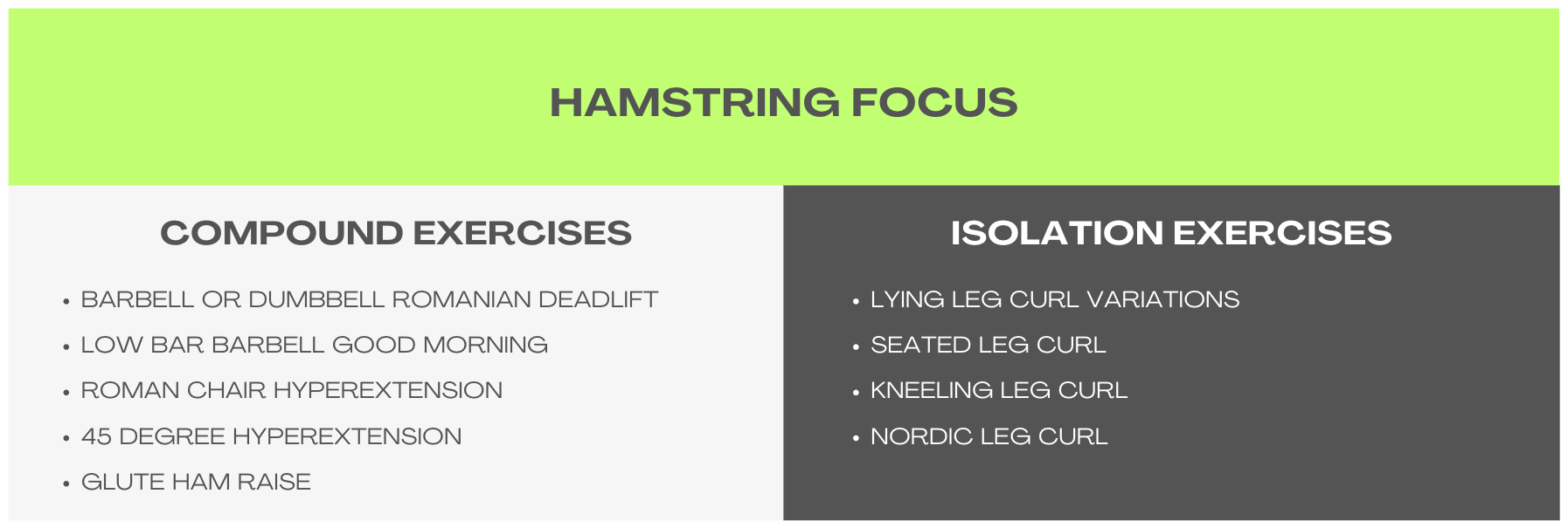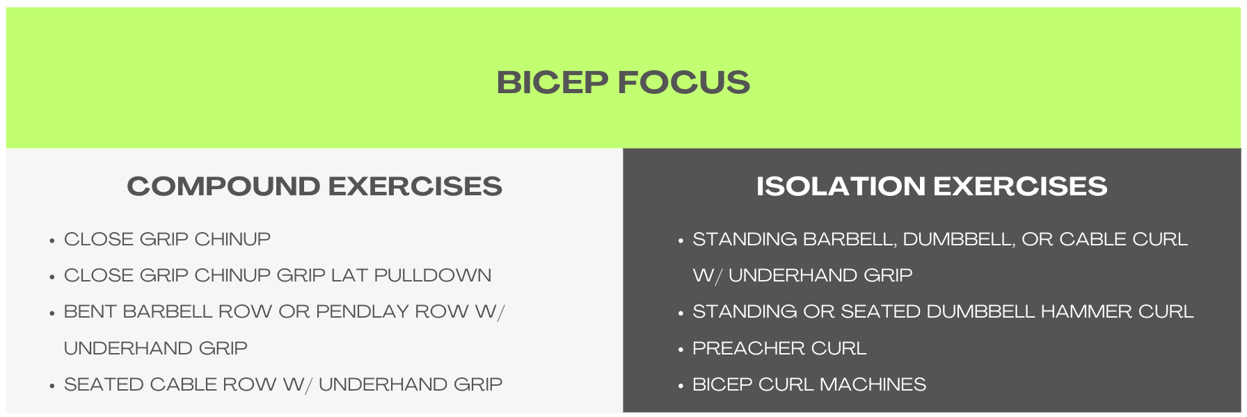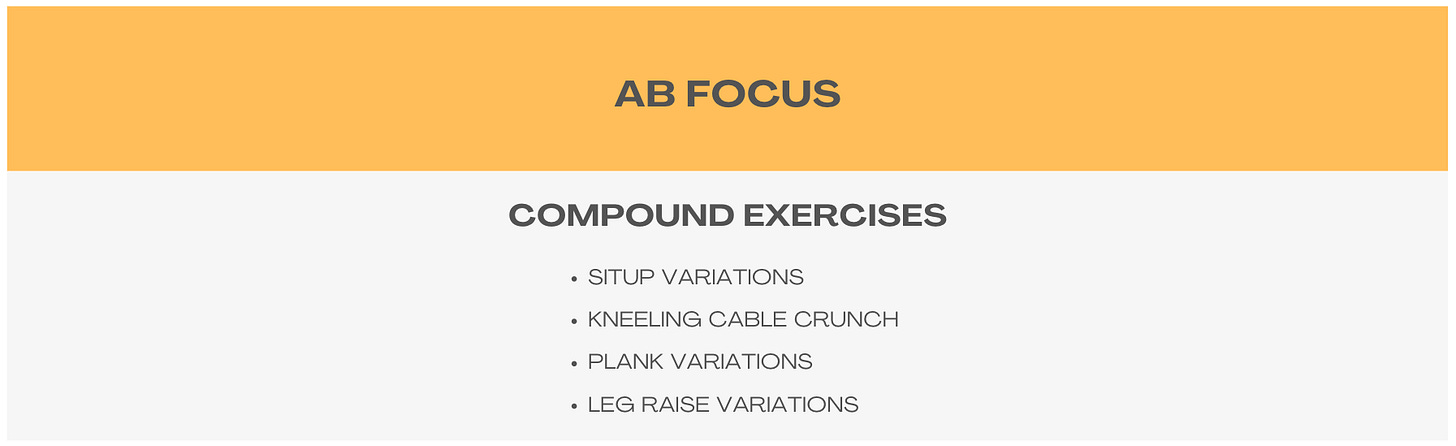 My lists aren’t exhaustive, meaning there are exercises out there that are excellent choices, which aren’t included in them. I wanted to keep them relatively short for ease of use, but still robust enough to provide variety over months/years of programming.