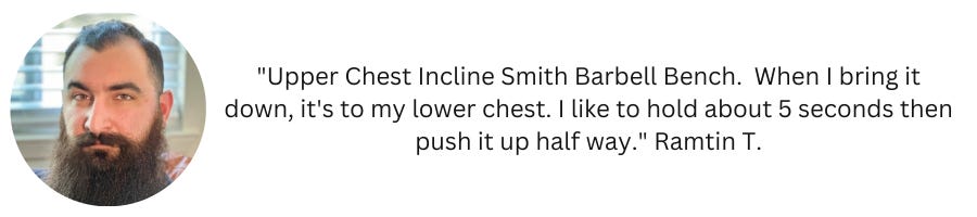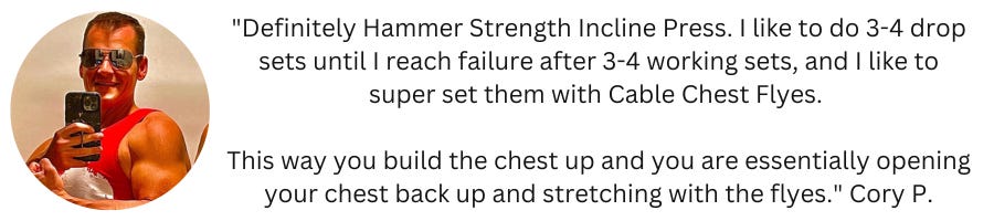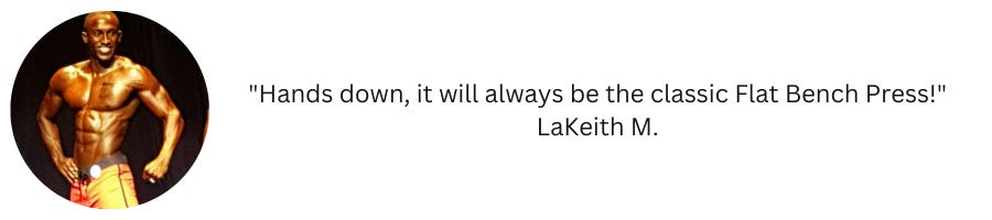 I really wanted to hear from fellow lifters for this article, so I asked my subscribers and social media following to tell me their favorite Press Day exercises. Here’s a few of their answers: