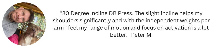 I’ve listed the criteria for an effective Press Day and now I’d like to list out a handful of exercise options that satisfy each criteria point. This will give you multiple options, which is helpful in creating variety and maintaining mental engagement in your programming over time.