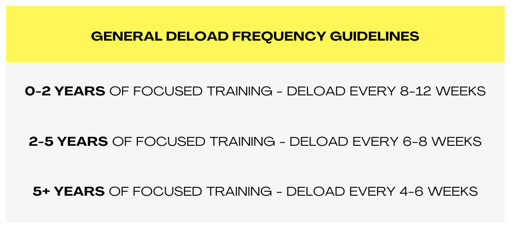 So far I've covered why you need to deload, signs to look for so you know when to do it, the advantage of scheduling deloads into your training, and also provided my own general guidelines on deload frequency based on training age.