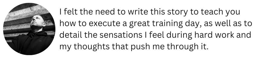 A narrative, designed to help you understand the sensations and thoughts that come with an intense and effective training day.
